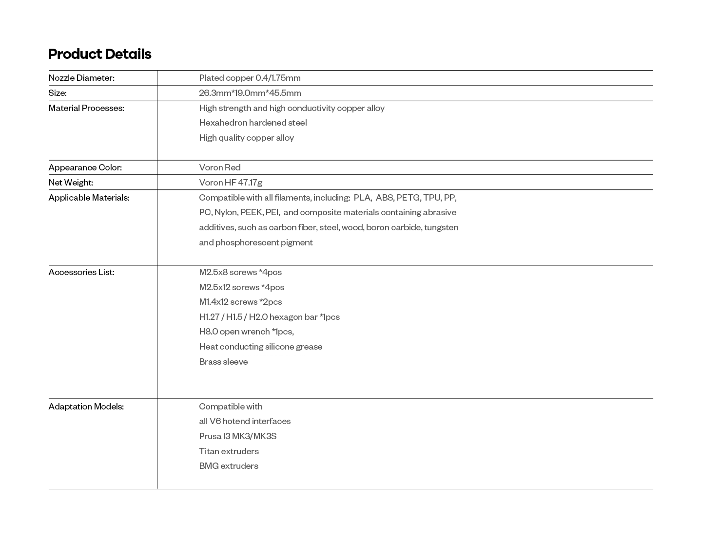 This is the Voron edition of the Dragon Hotend is the new generation of 3D printing launched by Phaetus which adopts a full metal kit and high temperature resistance up to 500℃.