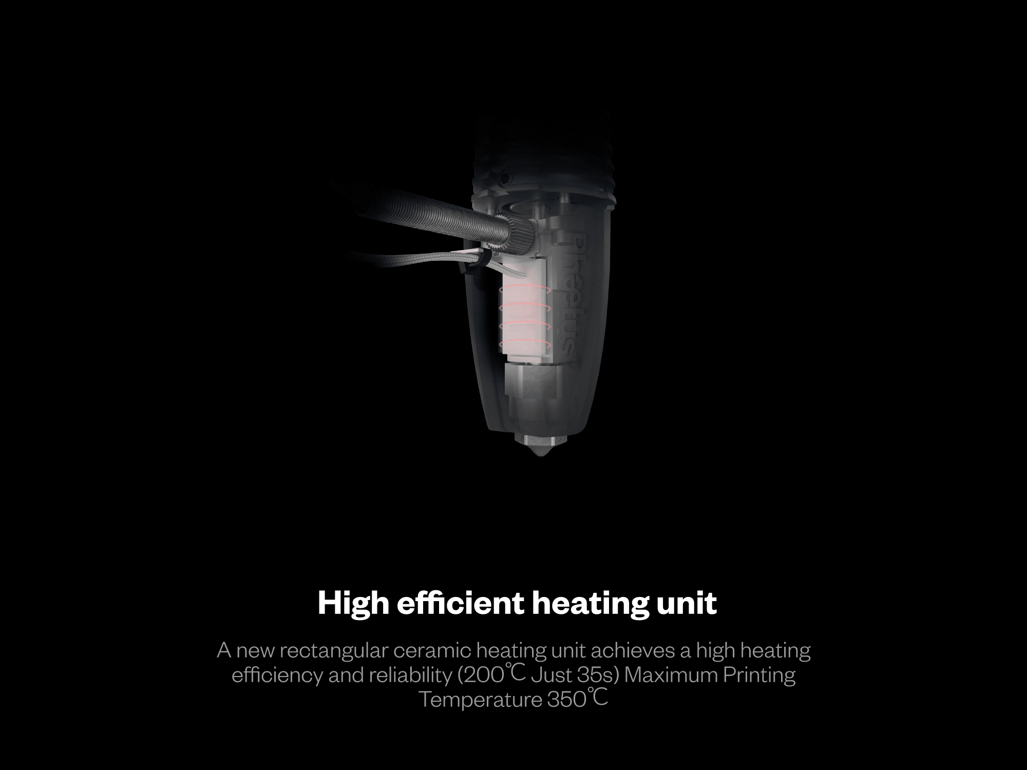 The new design of the heating block has a larger melting zone to meet the requirements of high speed and high-temperature printing.