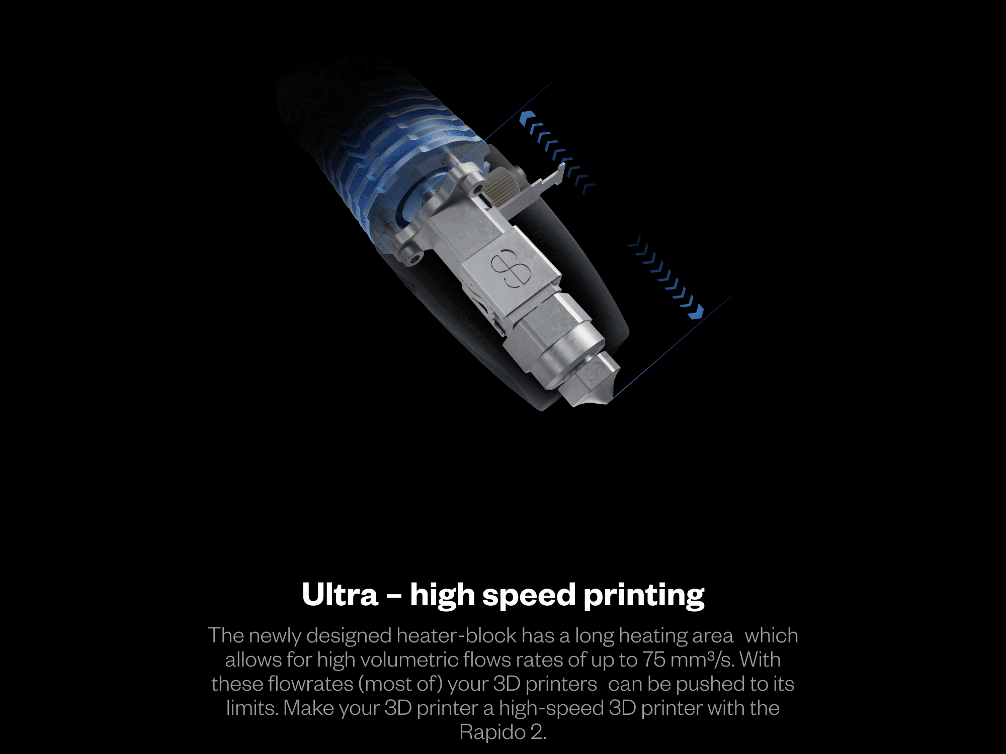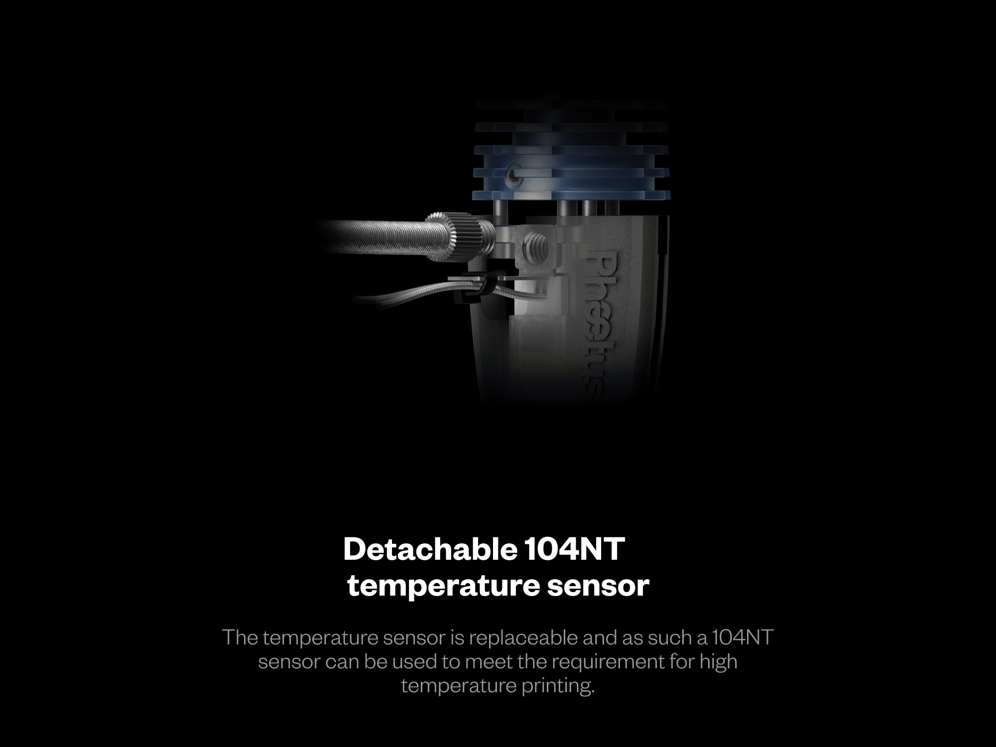 The Phaetus Rapido Hotends have numerous features that make them ideal for high temperature (280°C and Rapido Plus 350°C) and fibre filament printing.